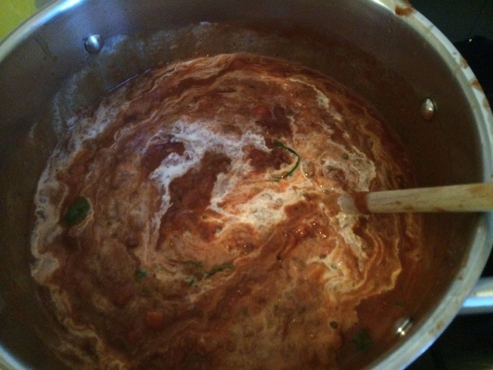 Sahne und Basilikum ganz zum Schluss (optional), danach abschmecken mit Salz, Pfeffer, Ketchup.