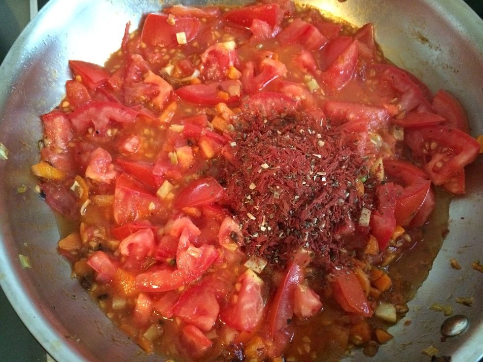 Wenn es schön braun ist Tomaten dazu und eindicken lassen.