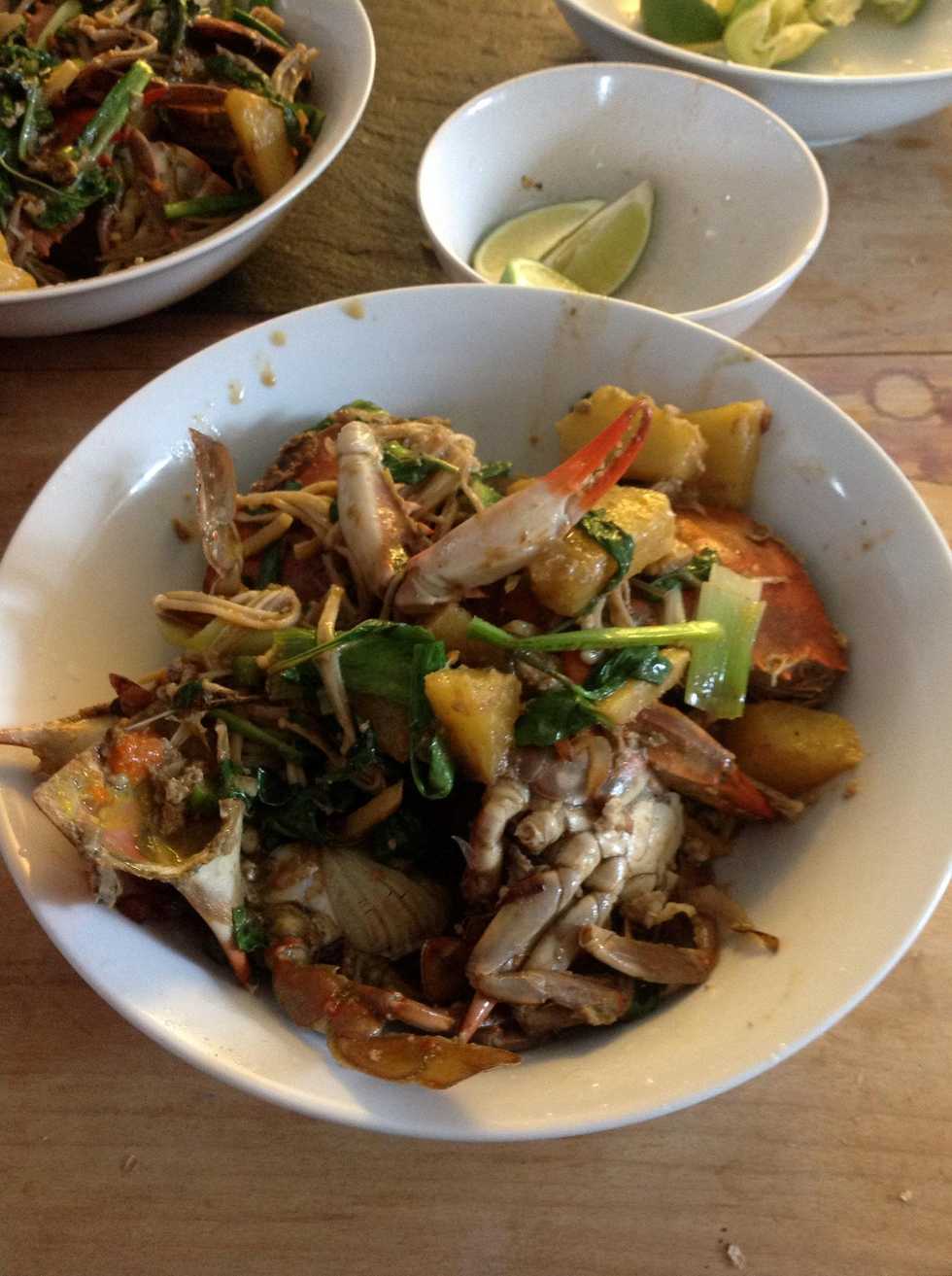 It was delicious and sloppy and wonderful. When the crab was all eaten there was a pile of greens and fruit and crab juice to eat with rice! Yay!