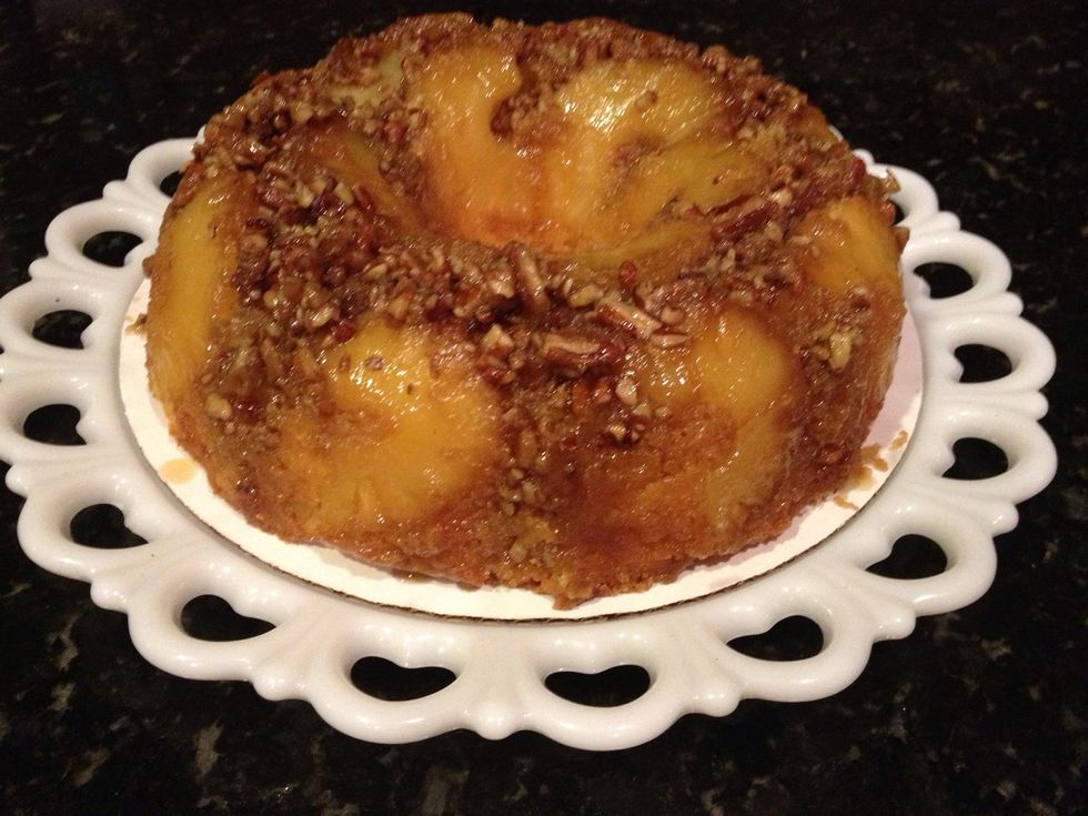 Invert cake immediately upon removal from oven. Careful! The caramel is hot. Let cool completely. Slice and bon appetite!