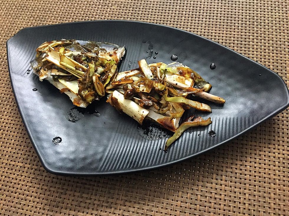 Sauté ginger and garlic. Add cabbage and lemon grass.
