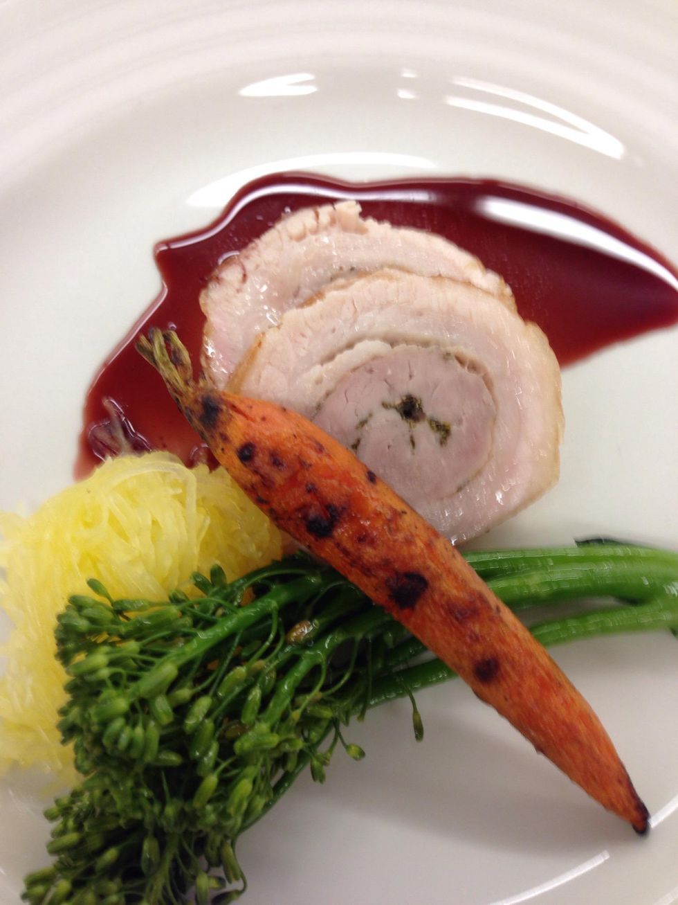 I served it for a wine dinner with spaghetti squash, charbroiled baby carrot, broccolini and red wine currant reduction.