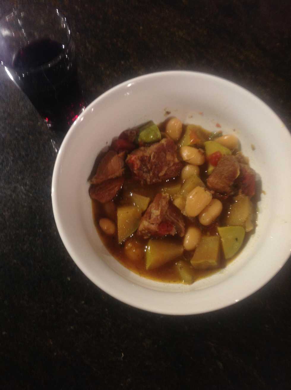 Cook Pork Stew W/ Green Chilies, Chayote and Beans