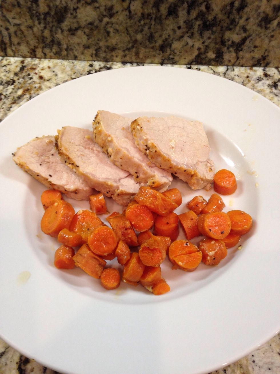 Chop carrots and put them in the Deep Dish Baker around the pork tenderloin