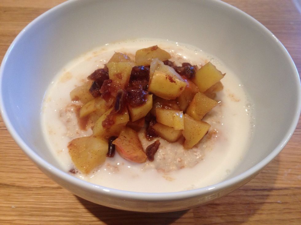 I then top with the cooked apple mixture and add a little non dairy milk around the edge. Tasty!