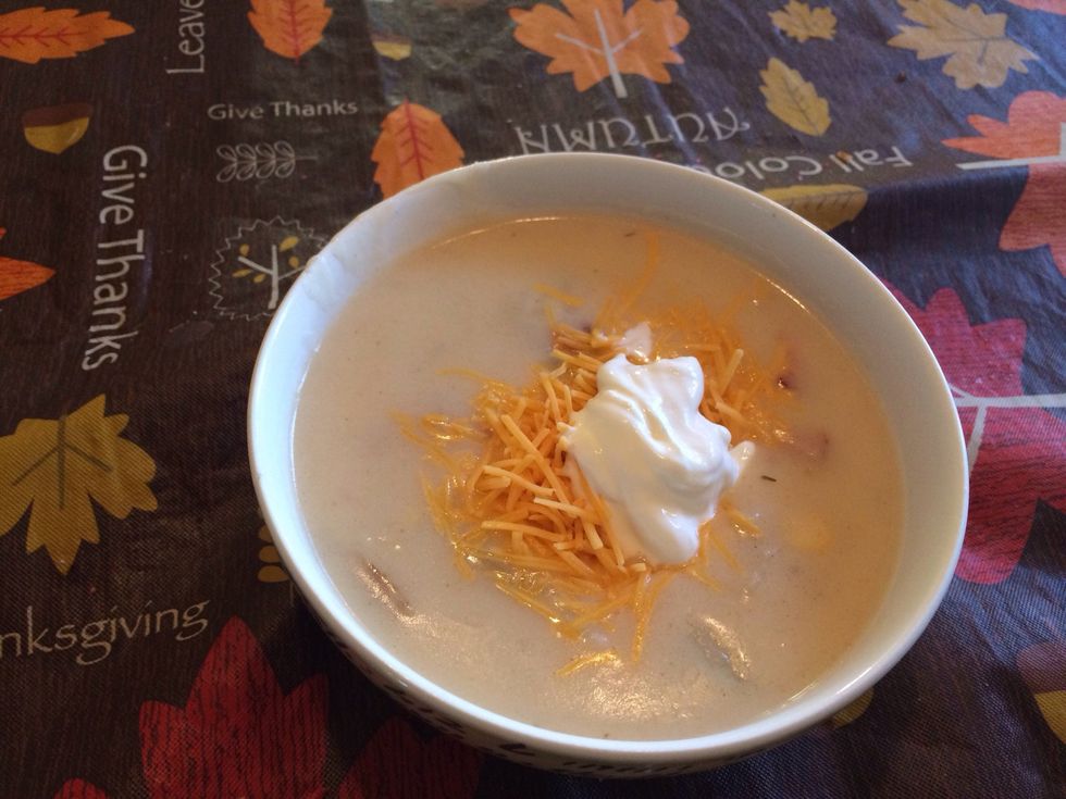 Bring the extremely filled pot back to a boil. Reduce heat and simmer until potatoes are done. Be sure you mix from bottom to top frequently to keep the heavy ingredients from melting into each other.