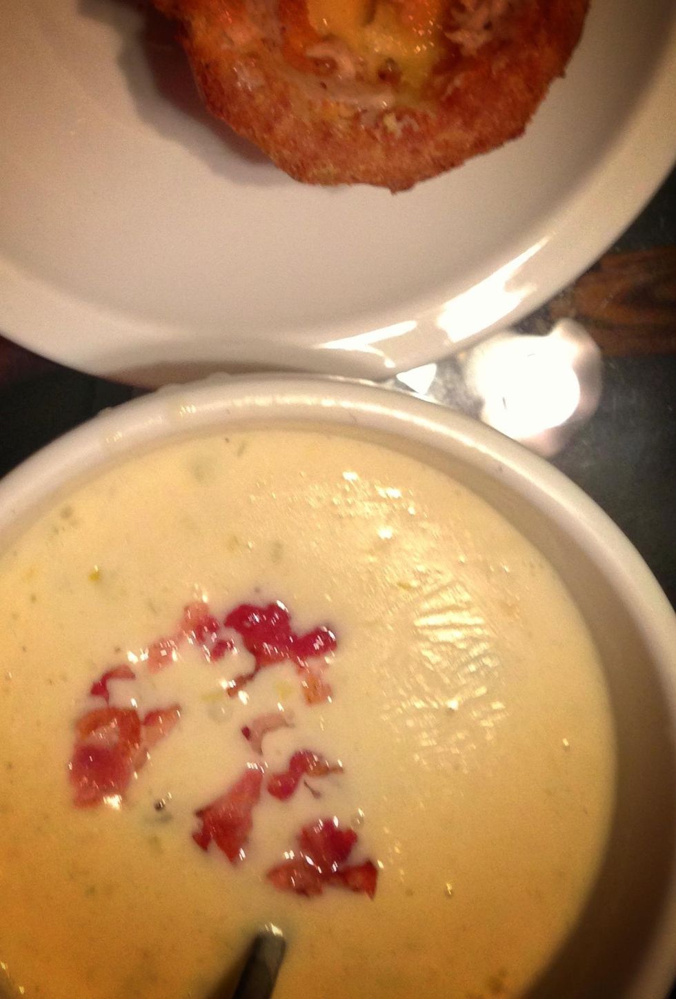 Start frying the bacon & stick the bacon grease in the butter, set the bacon aside for a topping.