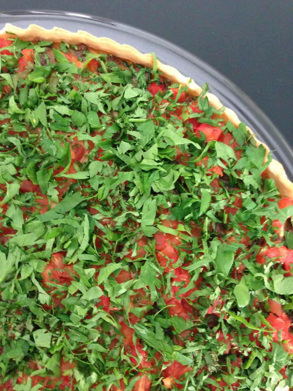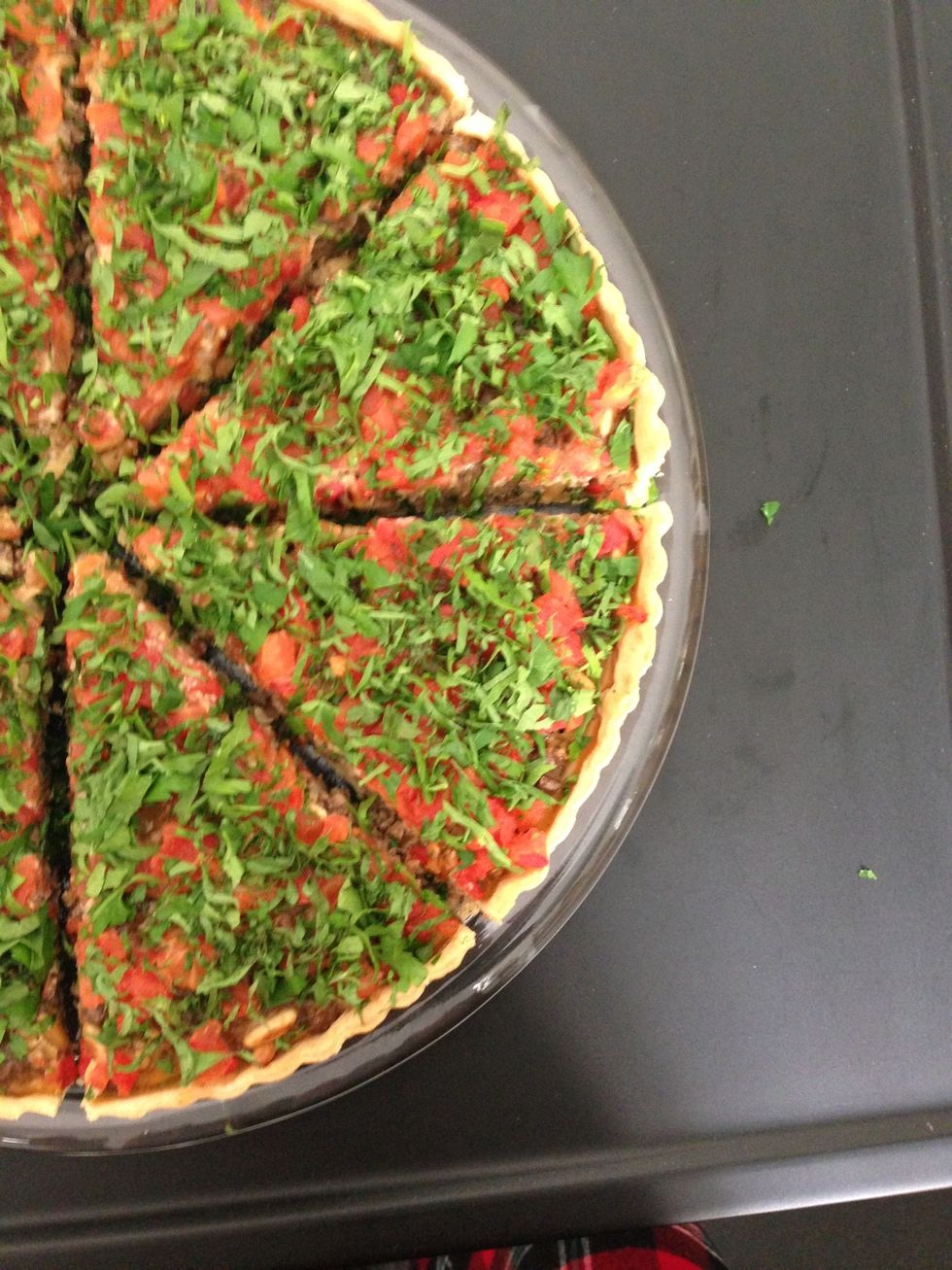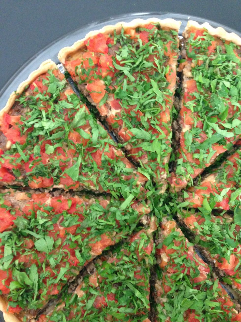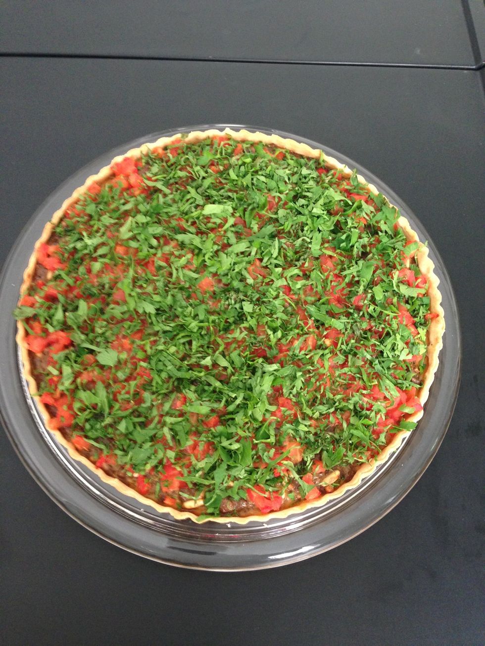 This recipe is a fusion between the French quiche and the lebanese la7m b3ajeen; sort of meat pizza. But the rest is my personal taste.