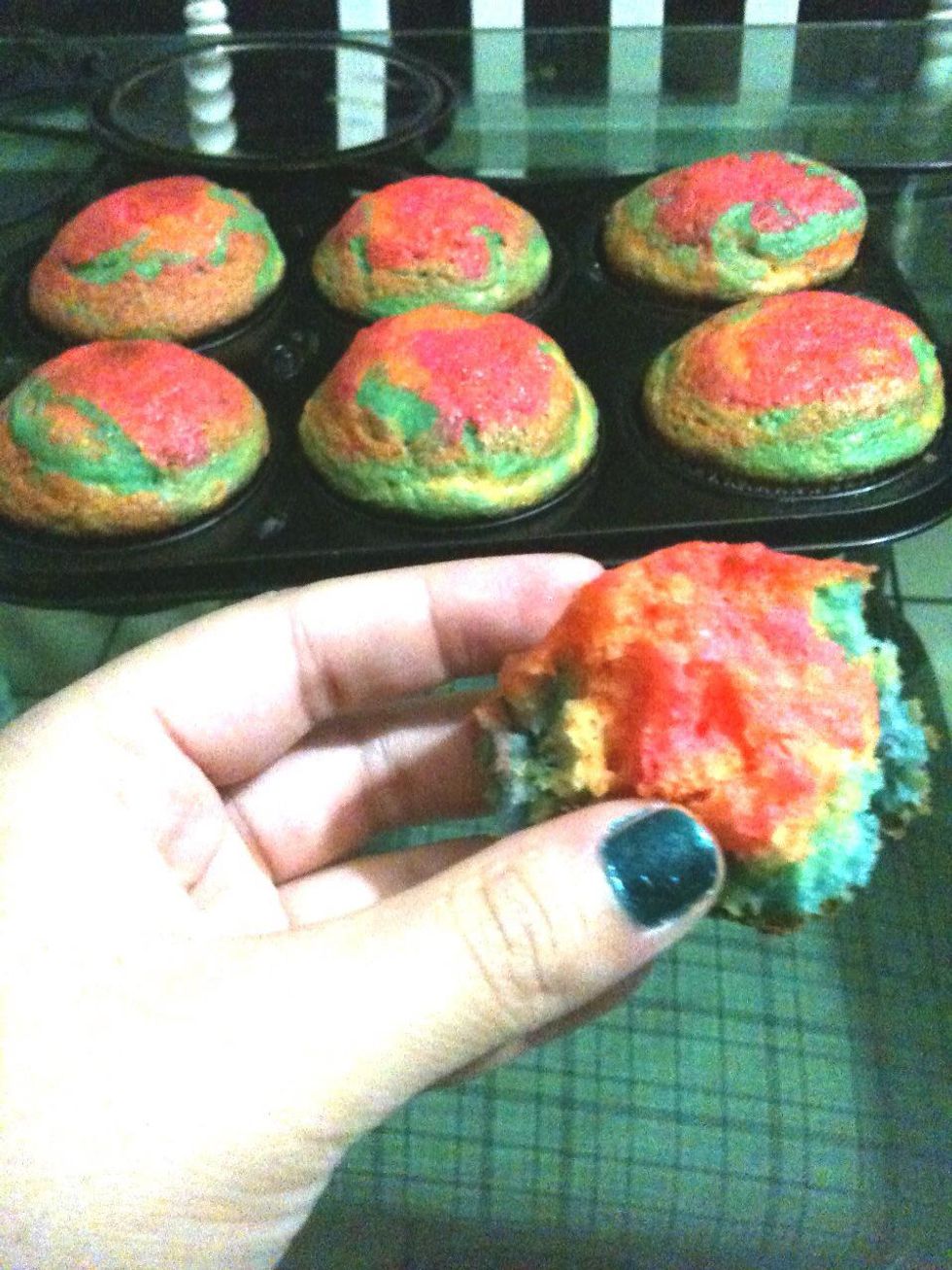 Once cold they are ready to eat! I do not get frosting but if you like you can put them. The inside will look like this, you can also make cake like this and it looks very cute, I hopeyou like it!