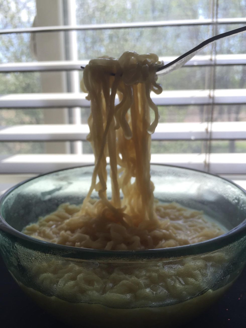 While you wait, grab the bag of noodles and crack it into four pieces. Do not open the bag yet.