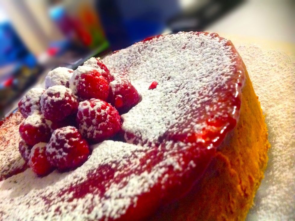 Decorate with ice ing sugar and raspberrys