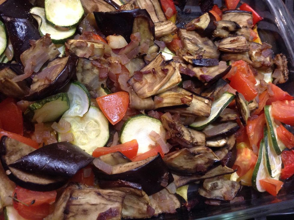 After one hour take out the ratatouille, drizzle a pinch of sugar over it and enjoy!