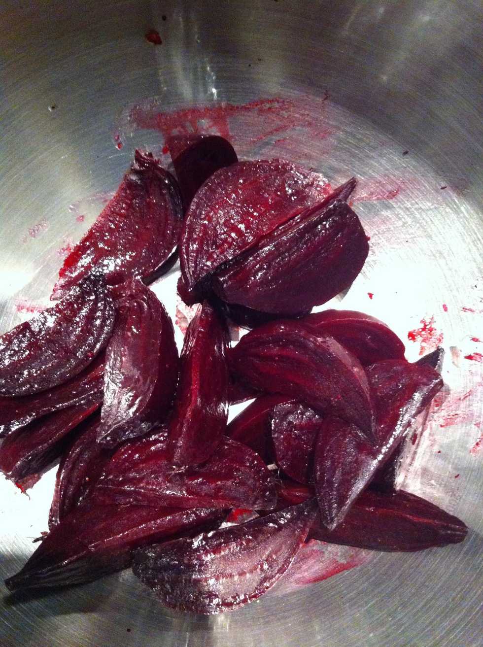 Then each half into quarters. If large beetroot cut into 1/8s. Or cook for longer...