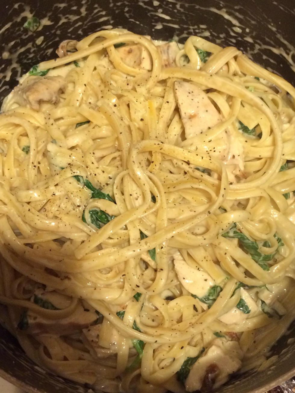 Cook fettuccine don't forget to put a little oil in the water so pasta doesn't stick