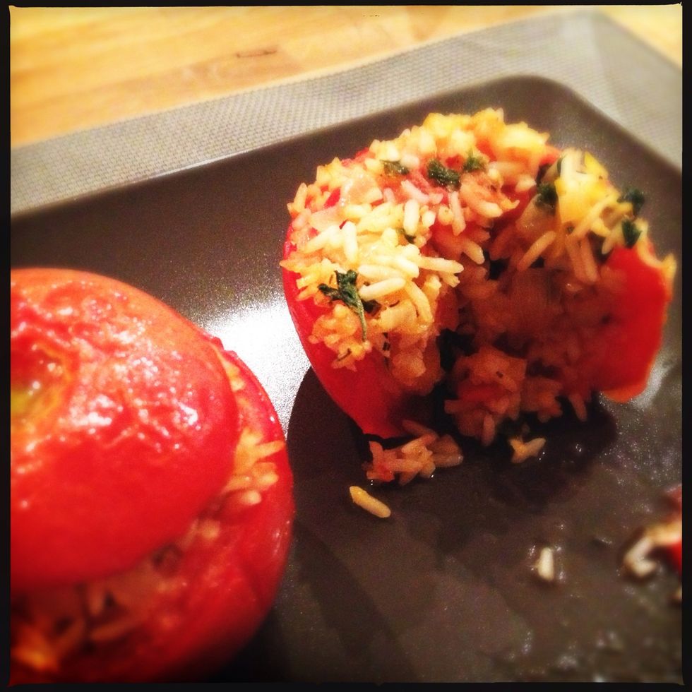 It's possible that you have some rice-veggie-mix left over, 'cos it didn't fit the tomatoes. Don't throw it away! Put it in a big omelet the next day and you have a superduper fast & healthy meal!