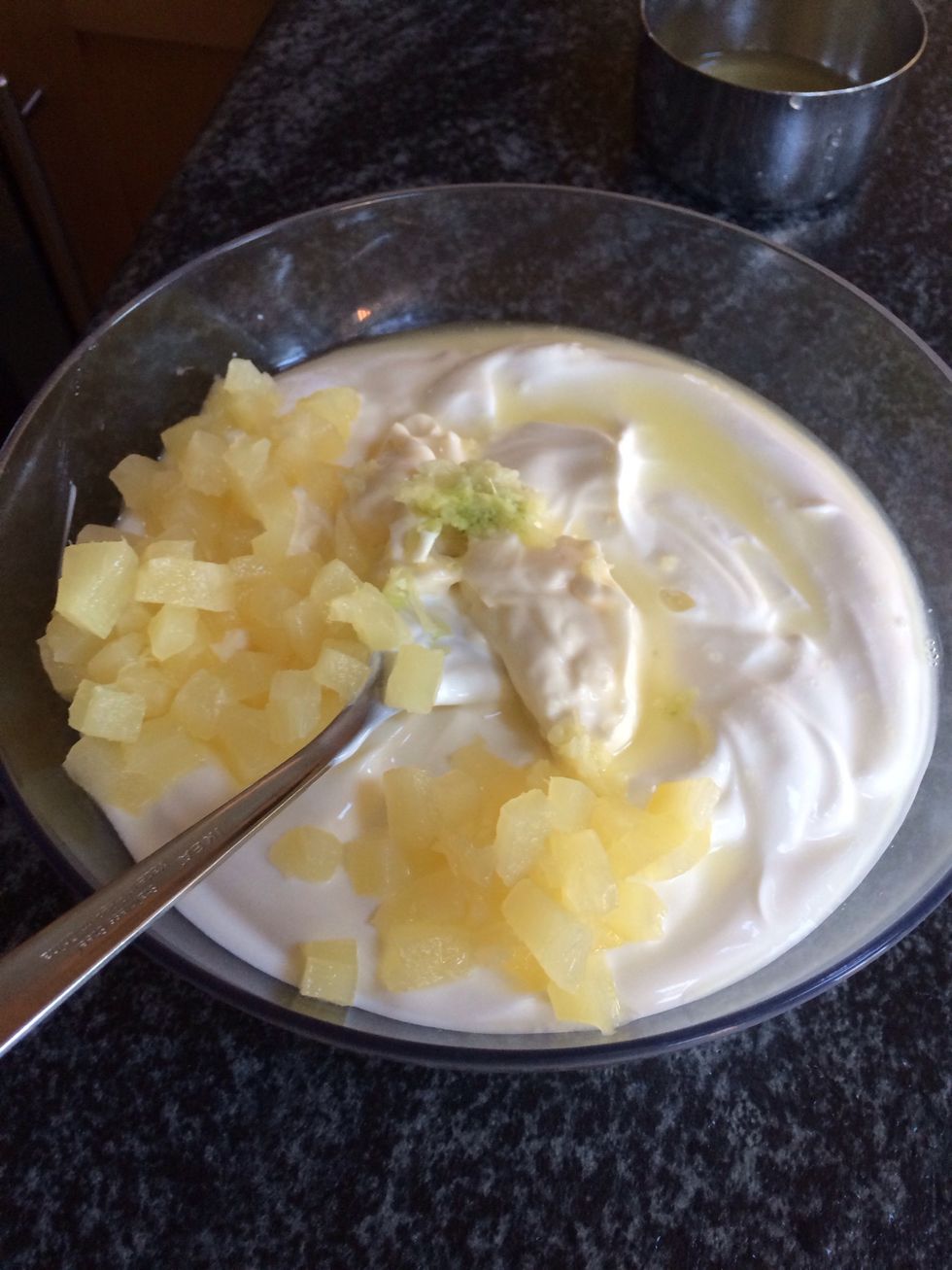 In a bowl mix yogurt, mayonnaise, salt and lemon juice.