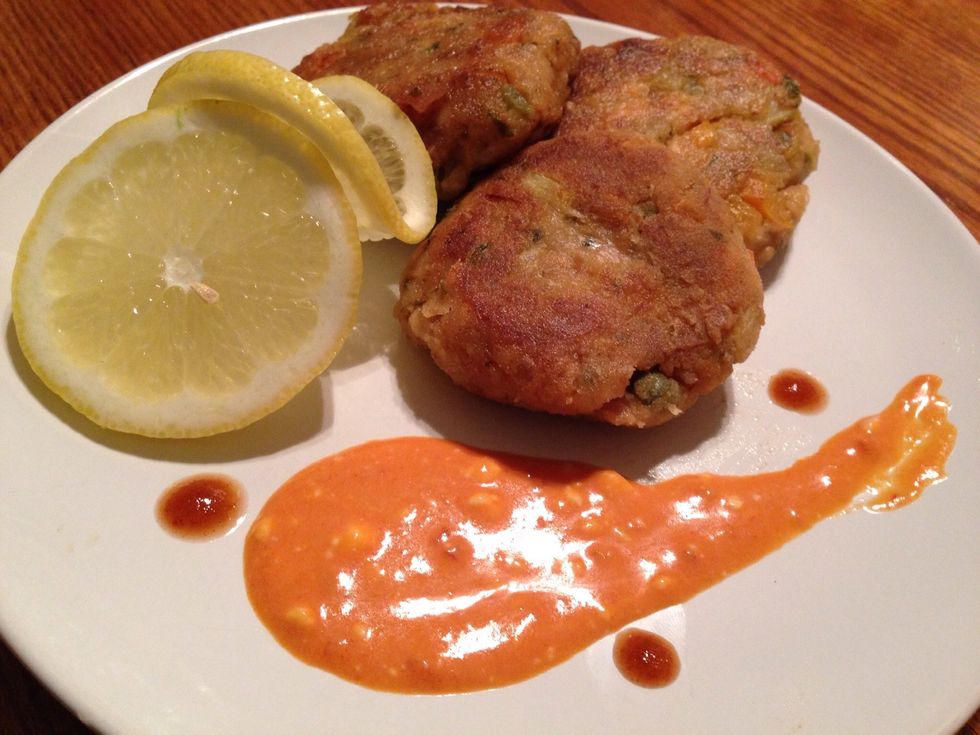 Create small cakes and dust in flour before frying