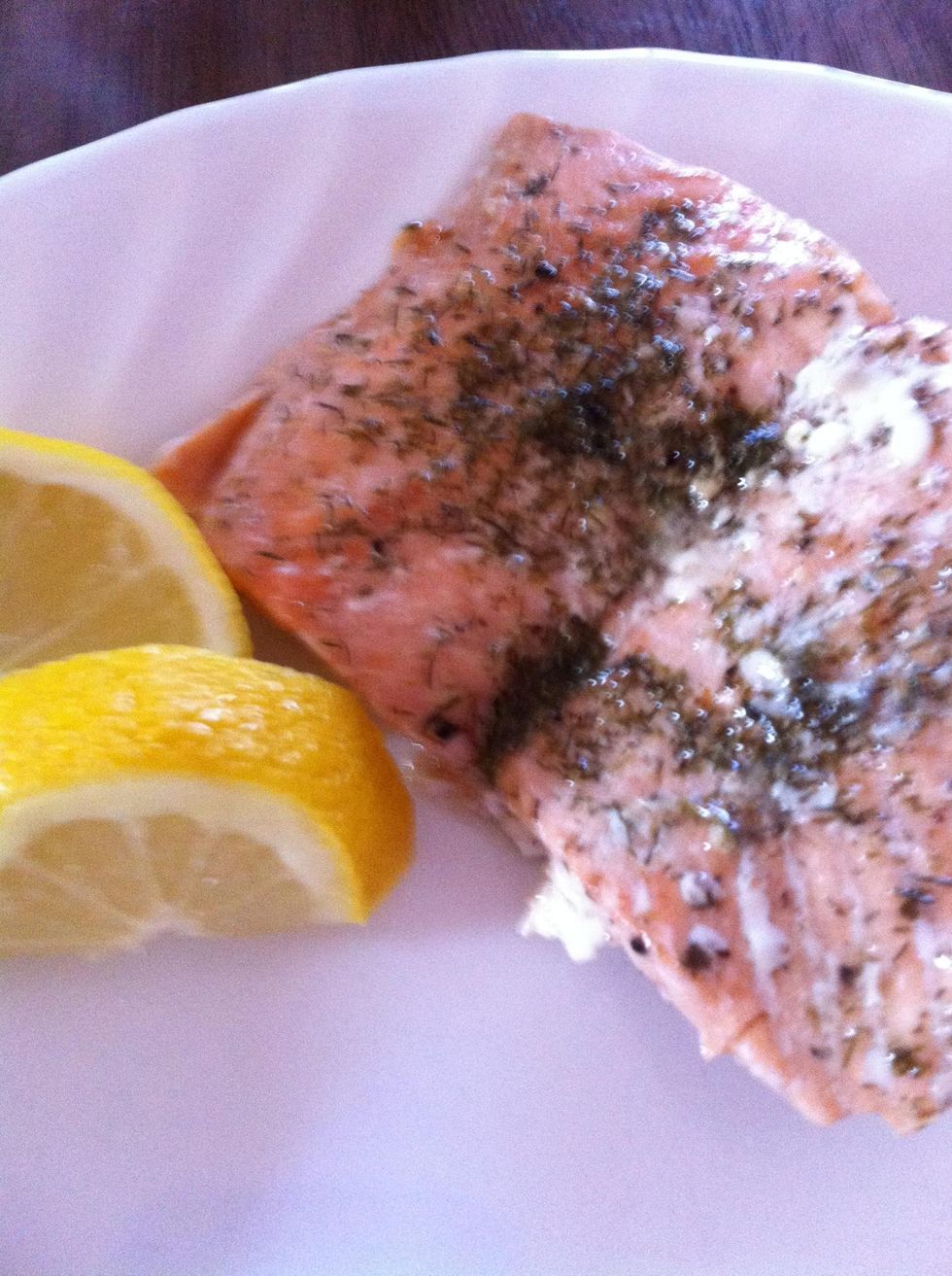 Drizzle with a little olive oil. Sprinkle with salt pepper and dill. You can also use fresh dill if you've got it!