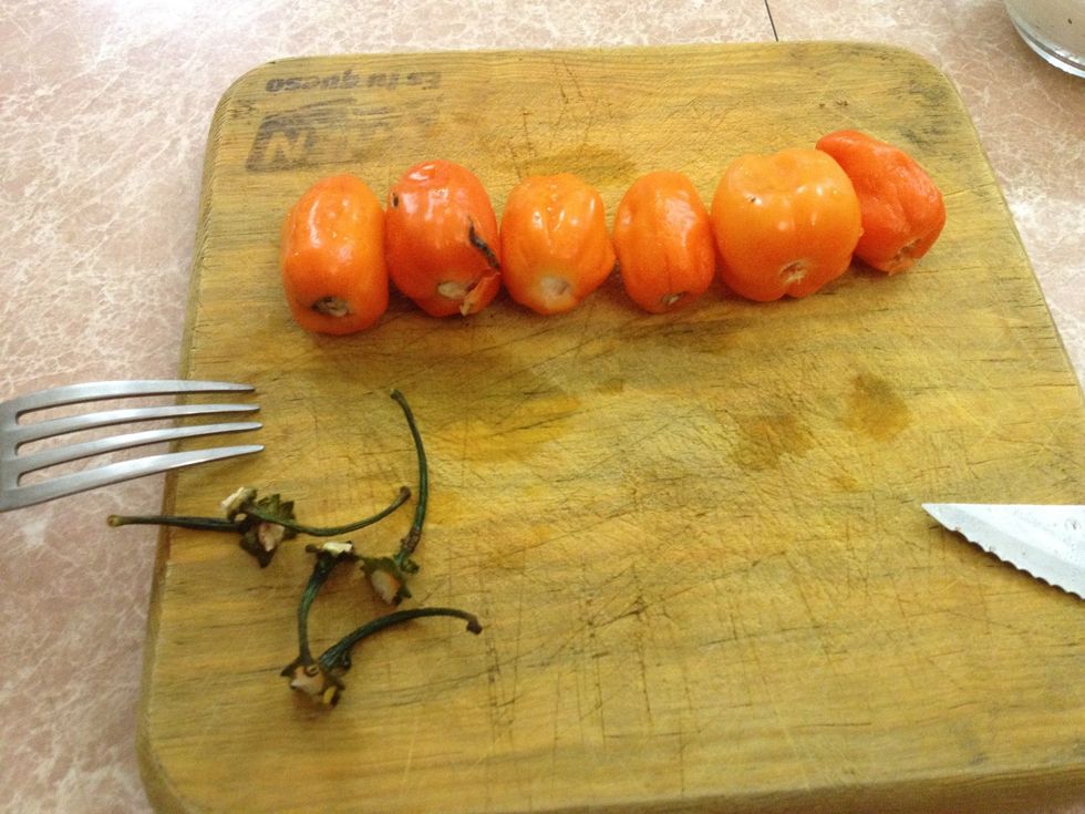 Hay que asar el Chile de árbol y los chiles habaneros.