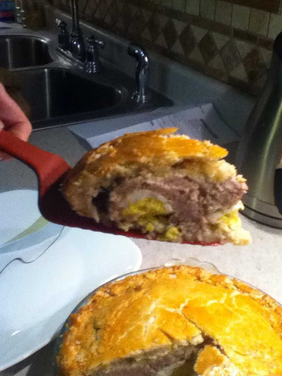 Sirve la mezcla de huevos, leche, y salvia en la carne