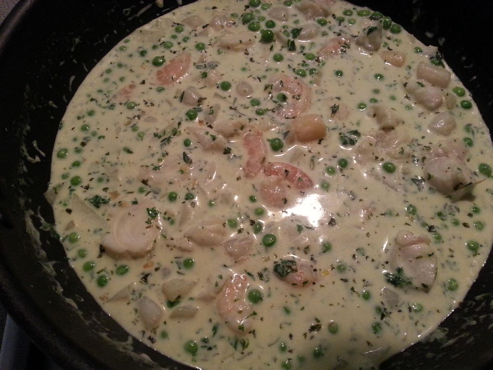 This can be served with rice or pasta. You can even follow this idea and swap the seafood with chicken. If you make the sauce rather thick- you can even use this as a pie filling. Bon Appetit.