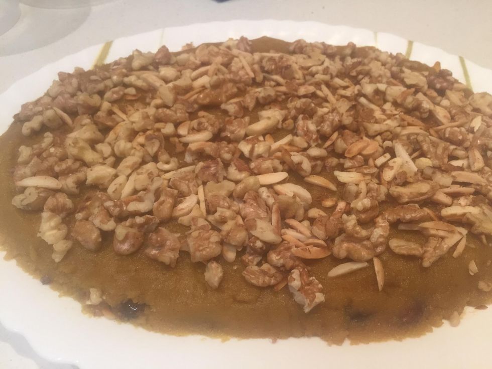 Cover the Halva with the nuts and almonds. Let it cool for half an hour and ENJOY having it with tea.