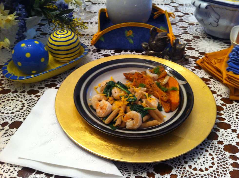 Cook Shrimp Pasta With Roasted Sweet Potatoes