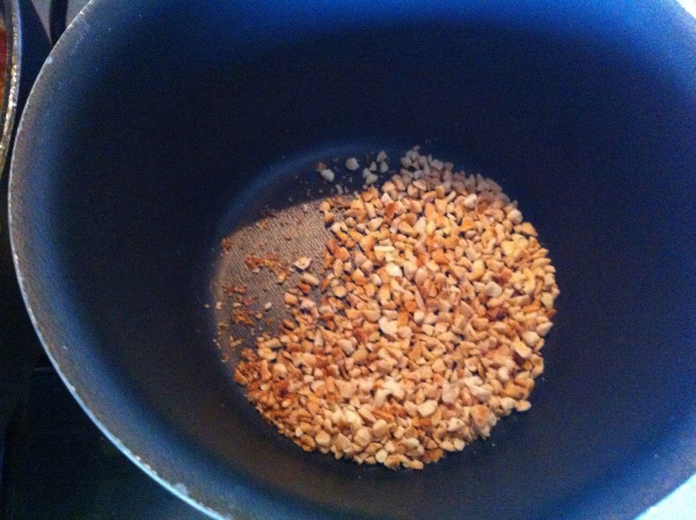 In the meantime slightly toast the crushed almonds. Don't burn them!