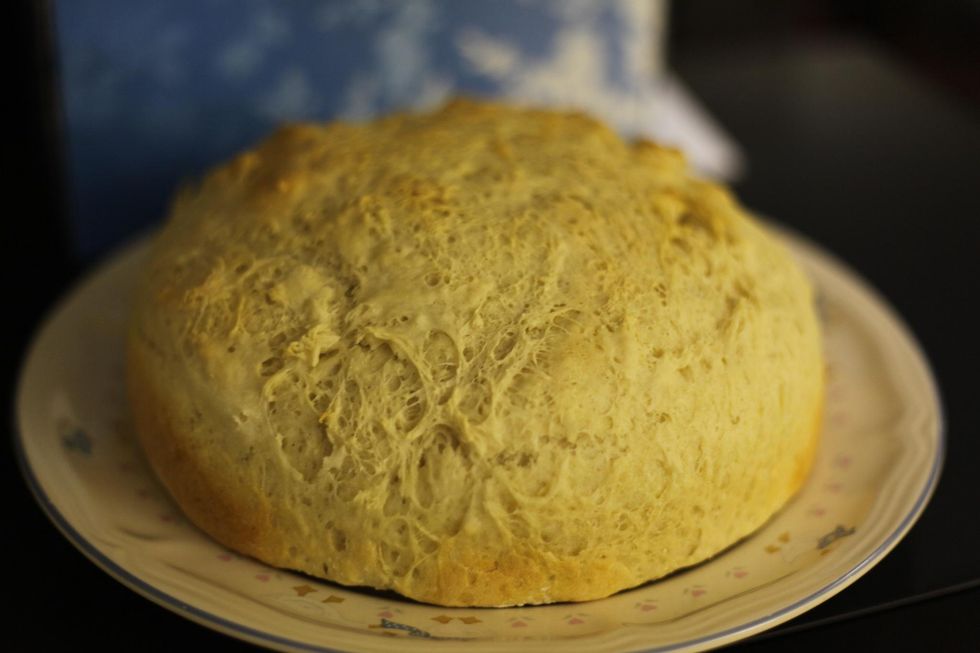 Simple, white bread that just smells amazing and looks absolutely out of this world. Let's taste. It's hot and just out of the oven. Cream cheese please!