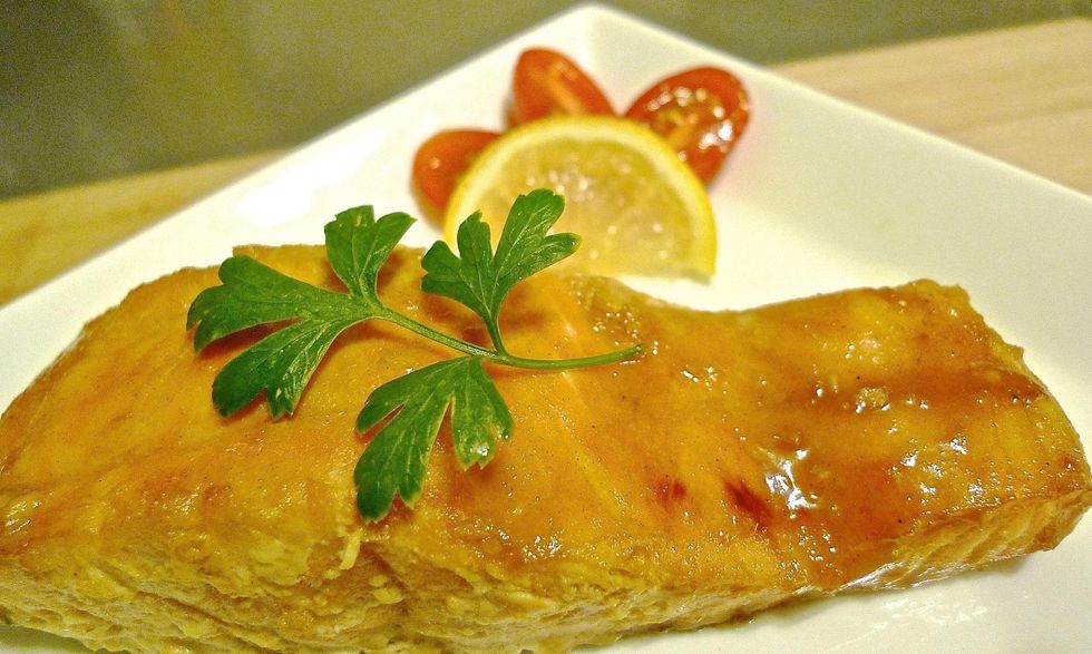 Squeeze a tinge of lemon juice on the top of the grilled salmon before serving to give it an extra citrus flavour.