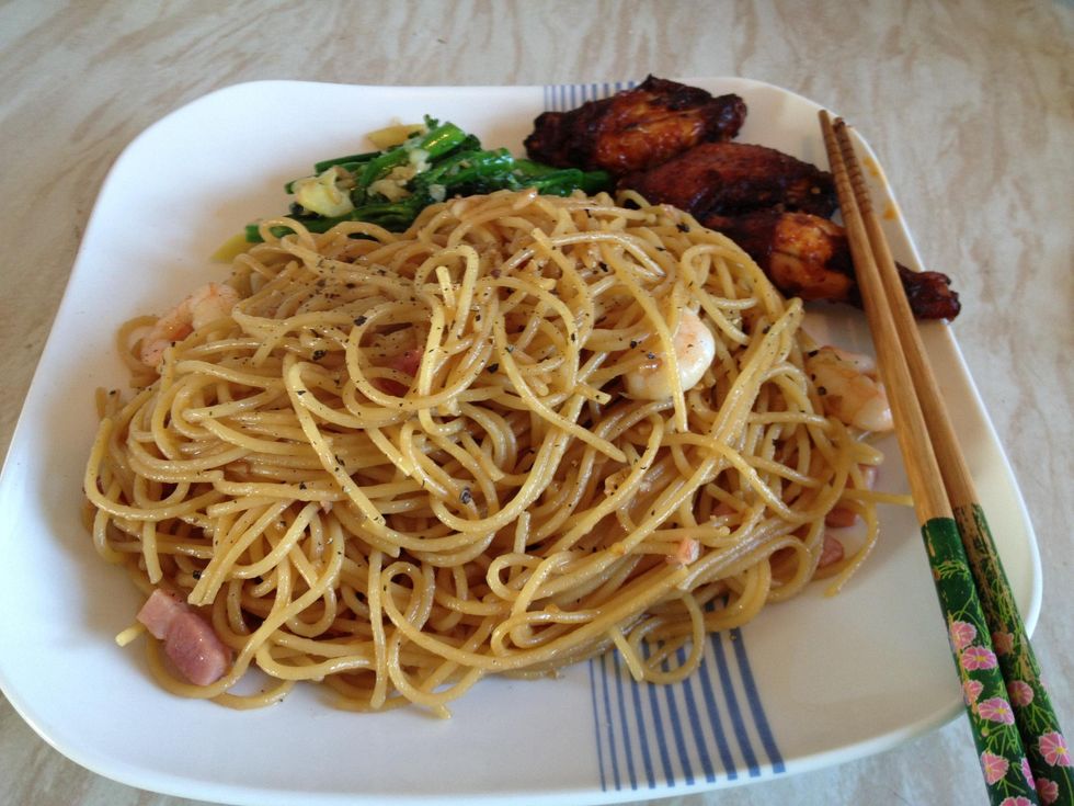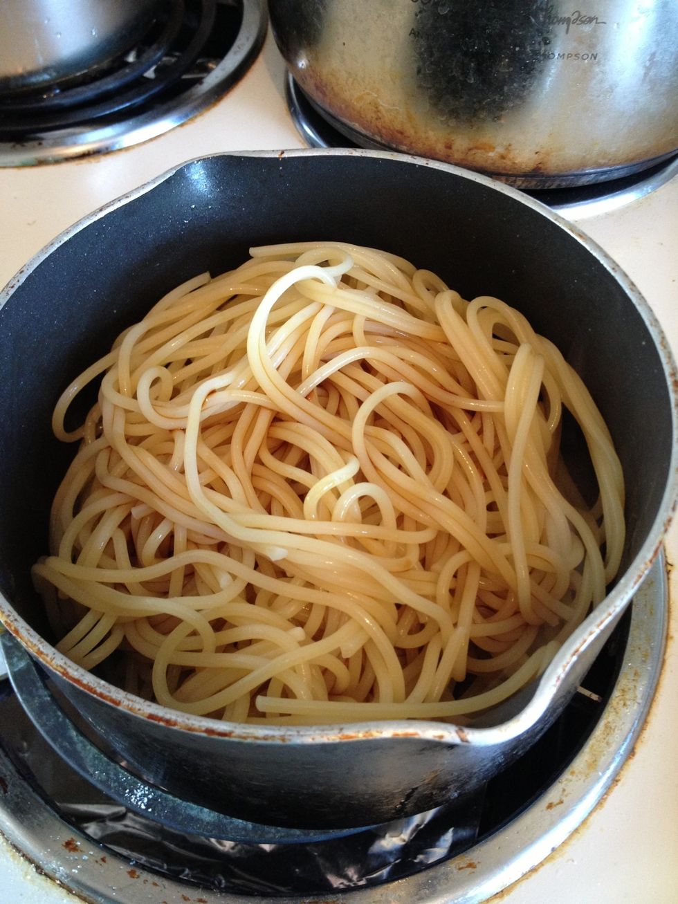 Prepare other ingredients while waiting for spaghetti to be cooked