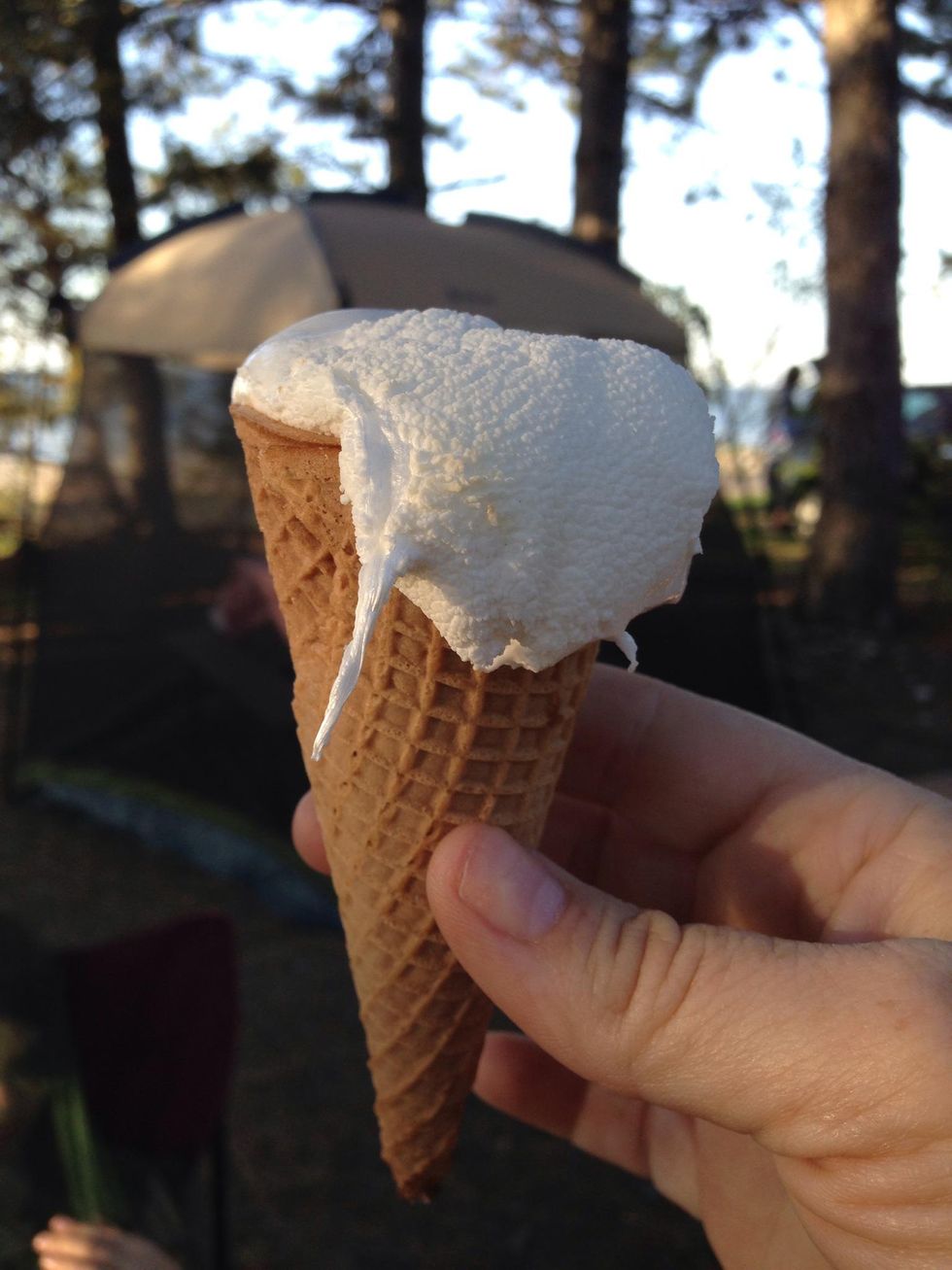 Once the marshmallow begins to expand and form a crust (about 5 to 10 minutes) your s'more cone will be ready to eat.