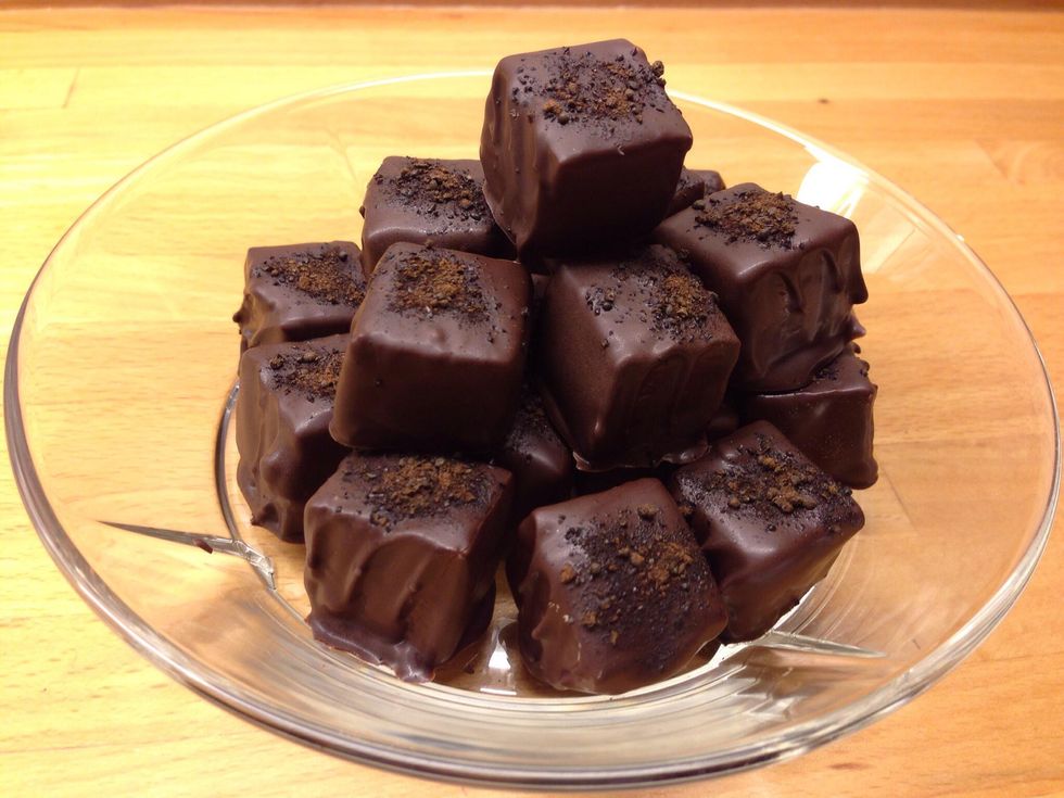 ...but I likes them, coated with chocolate and with a dusting of licorice powder.