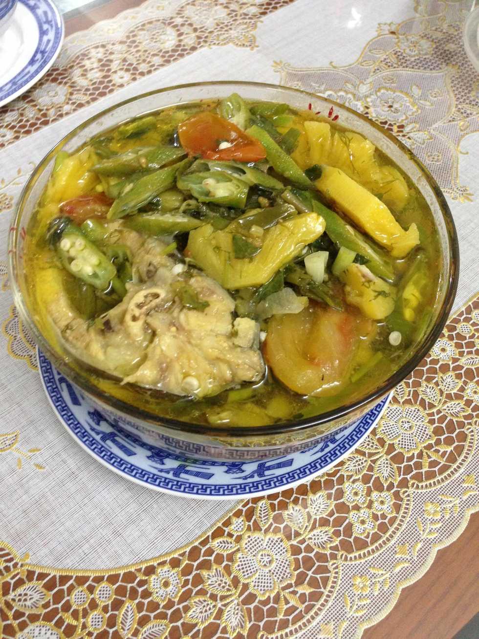 Just keep the soup boiling until the fish is well cooked (~20 min). Add the pineapple after ~10 min. The pineapple gives this dish its distinct flavour.