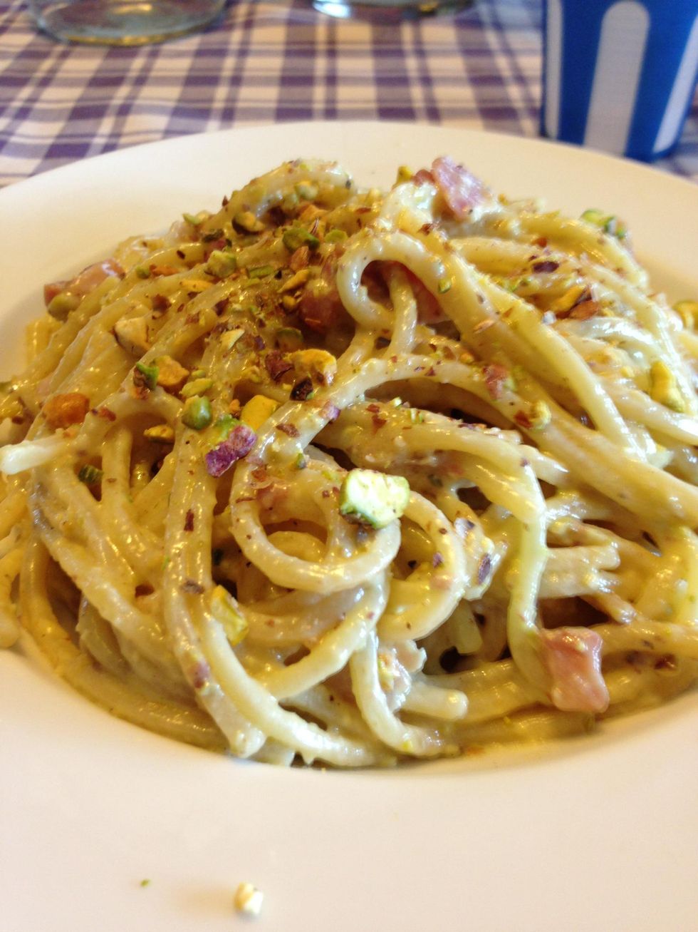 Tipical Sicilian Recipe, spaghetti with typical bronte's pistachios.