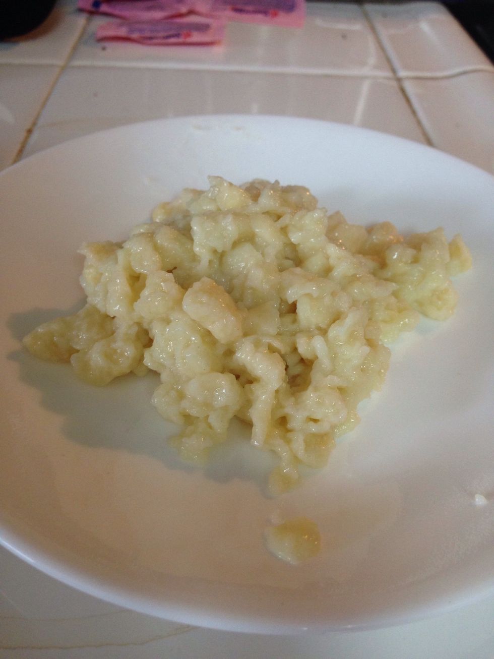 That's how they should look :) Add 2 cups of Swiss cheese and bake for 25 min for Cheese Spätzle or serve with any sauce or meat. Enjoy
