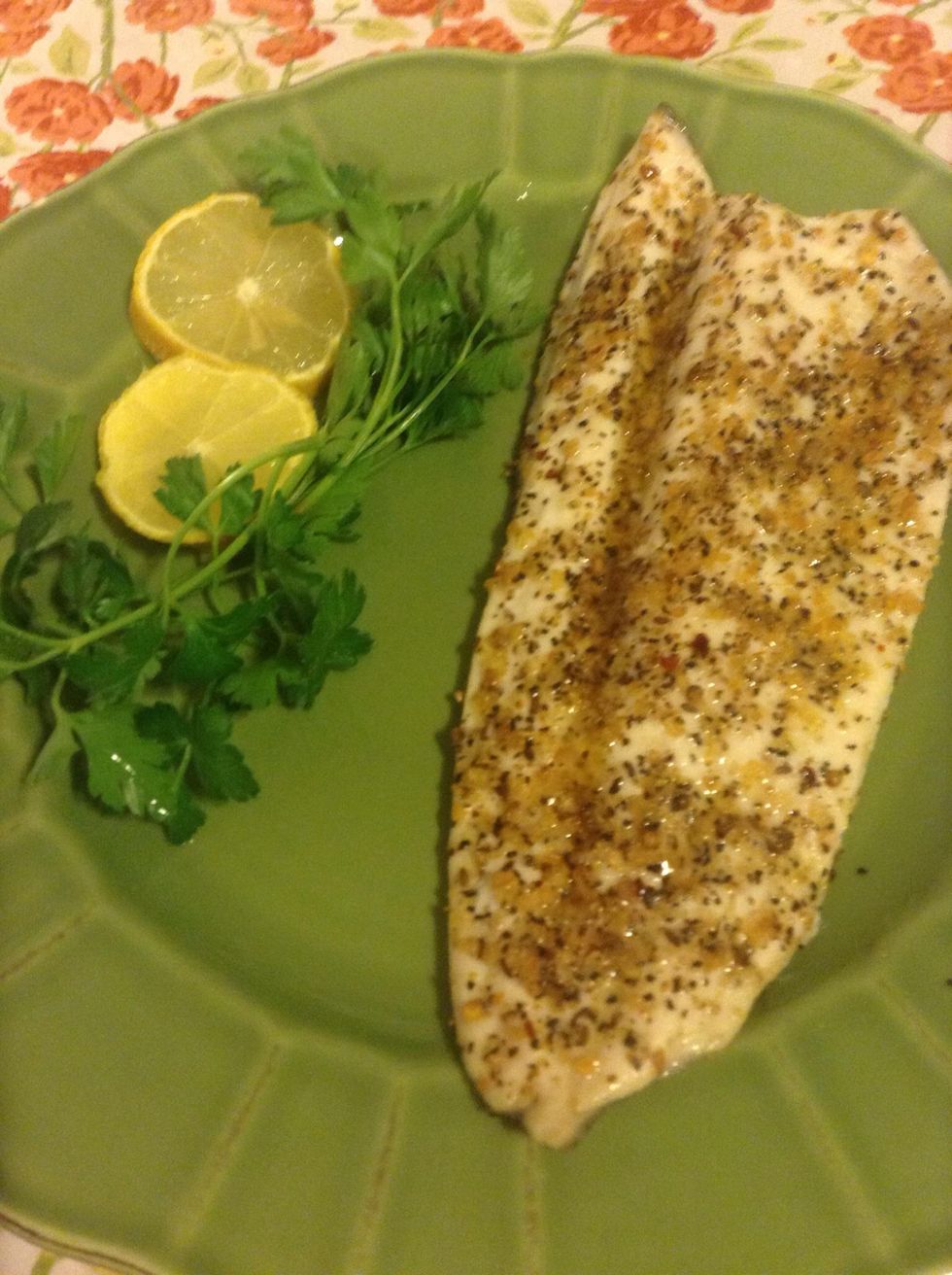 Done! Now usually I stick this under the broiler for a couple of minutes for a crustier, golden brown fillet but alas, my broiler isn't working. It will still be yummy.