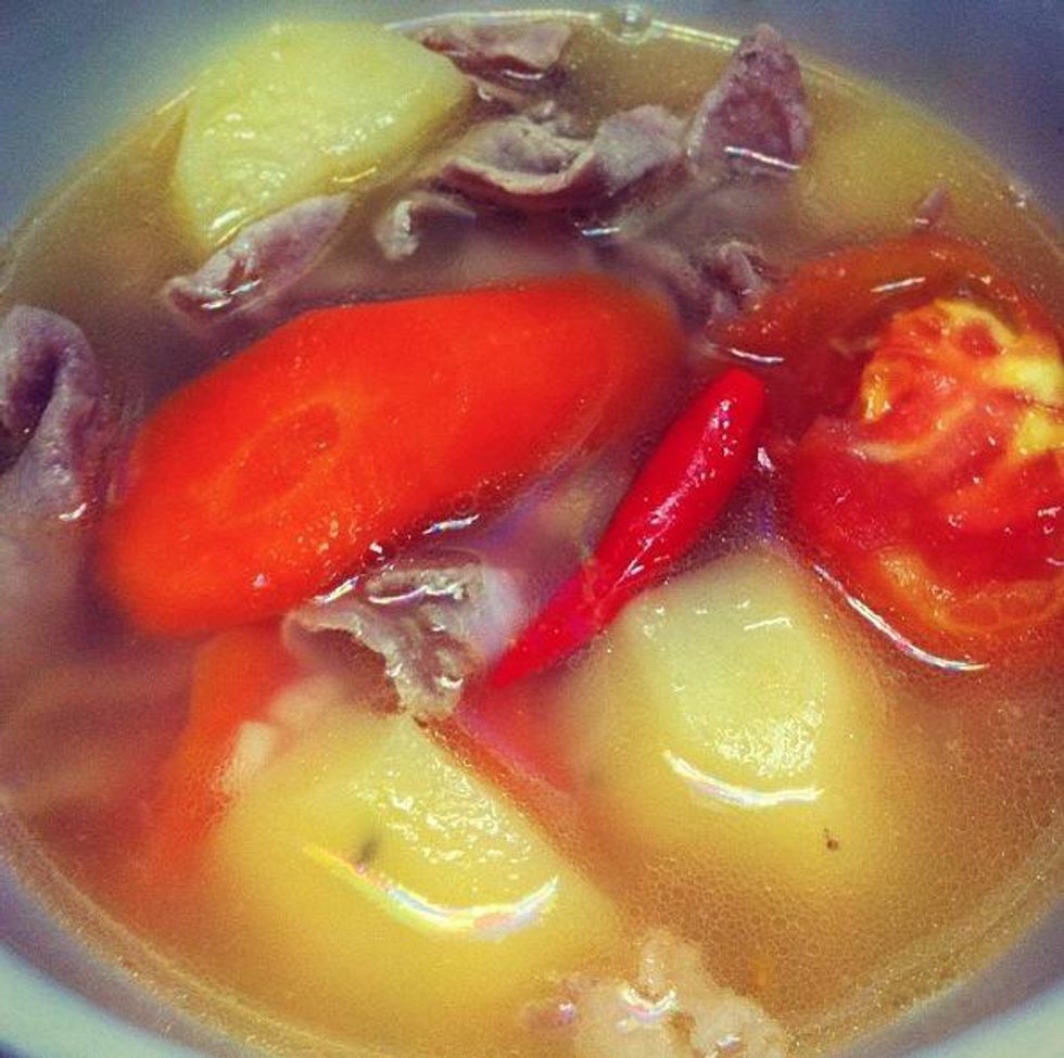 When the potatoes & carrots soften, add in the tomatoes. Turn down the fire & let it slow cook for an hour.