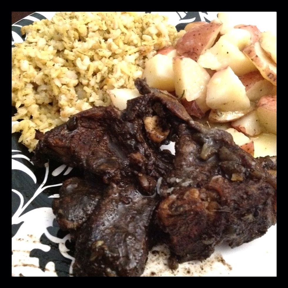 Pour spice mixture over lamb and coat chops. Put skillet into the oven at 425 degrees for 30 minutes or so. Keep checking on them and turning the lamb in the sauce.