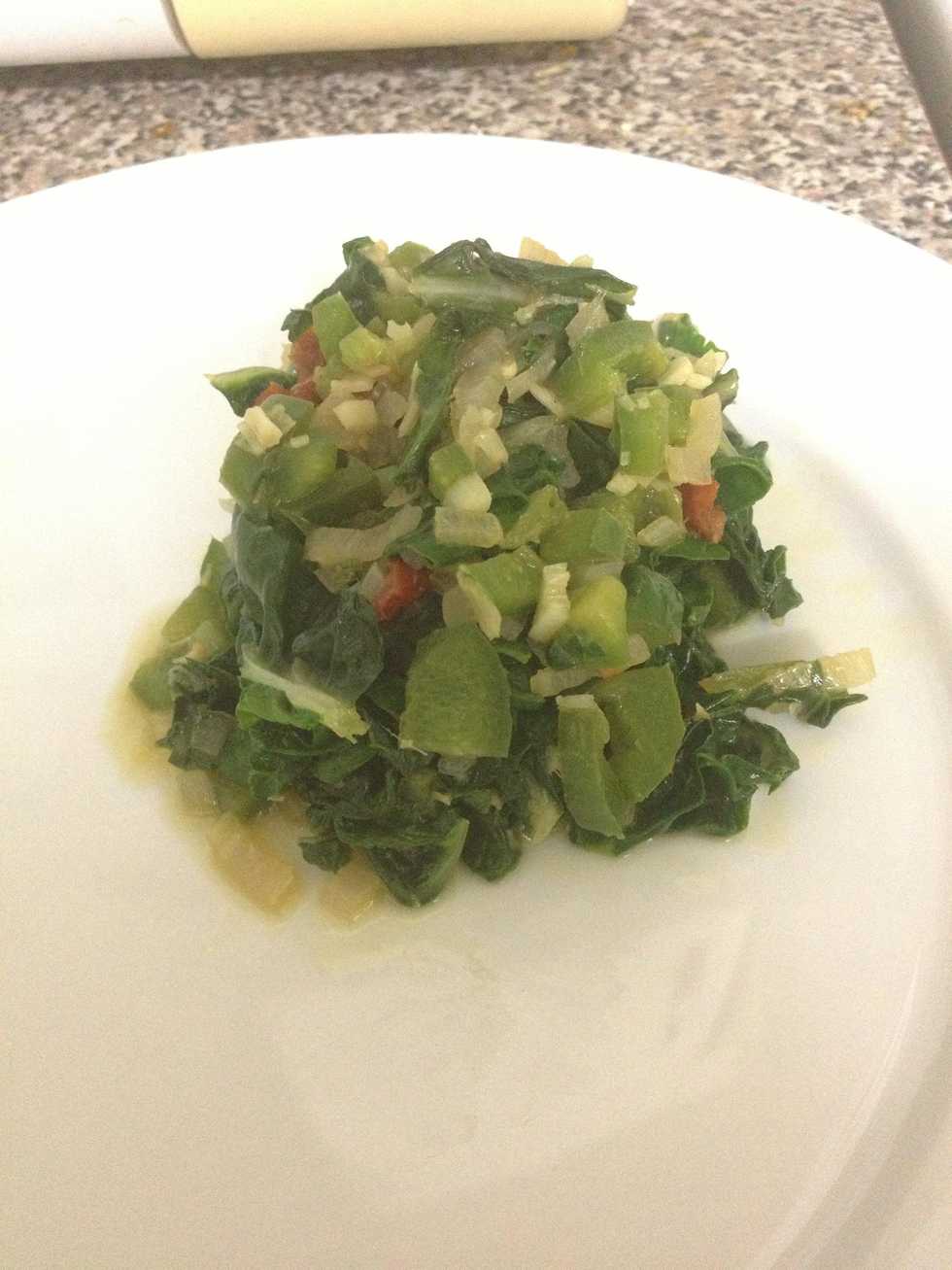 Add a little broth to keep the garlic from burning and then you'll add your Swiss chard.