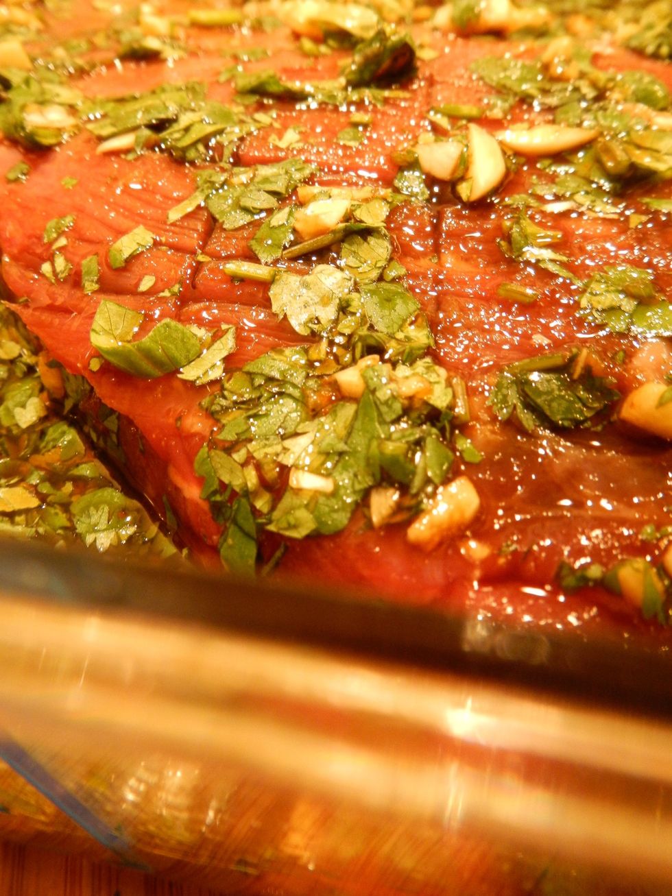 Place brisket into marinade container. Let marinade for an hour, flipping half way through process.