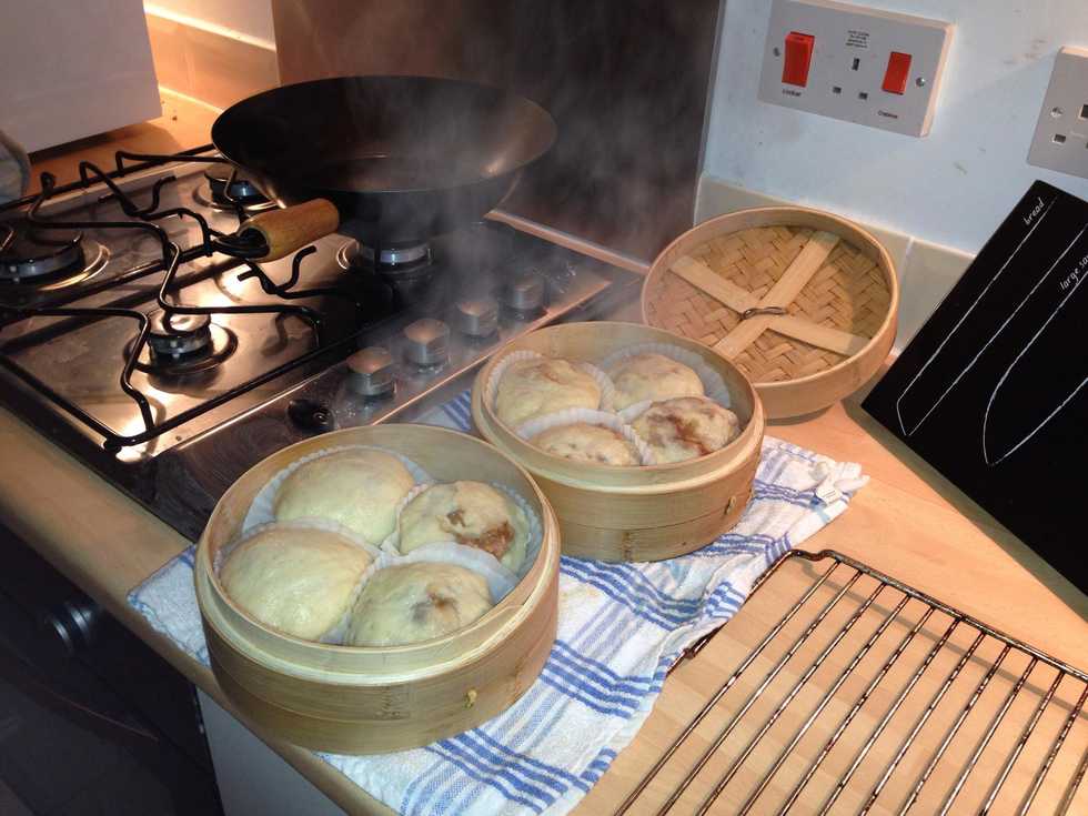 Put the kettle on and arrange the buns in the steamer