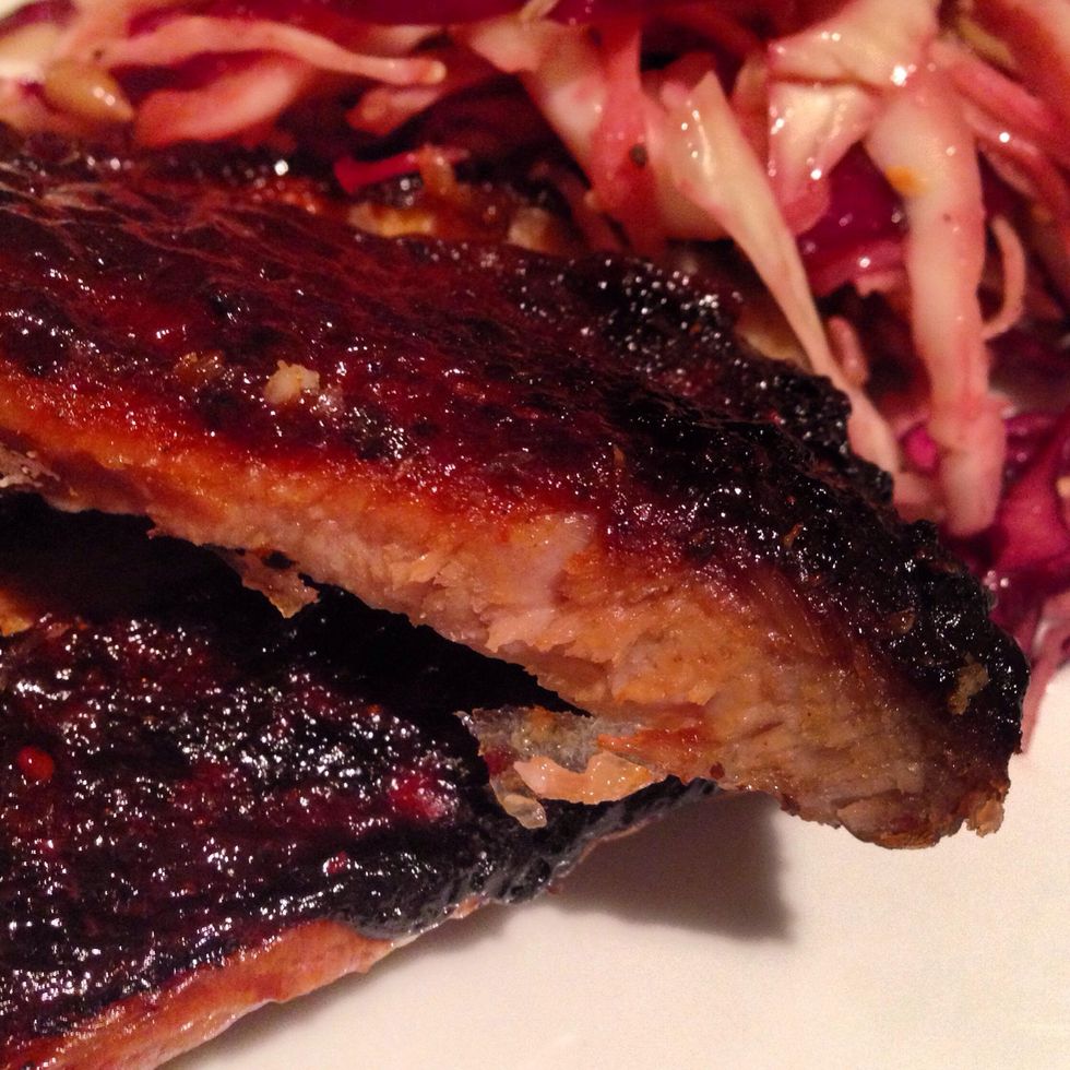 During the last 30mins, the sugar in the sauce will start to caramelise and that dark BBQ'd colour will start to come through. When you're happy with the colour take it out. Let is rest for 5-10 mins.