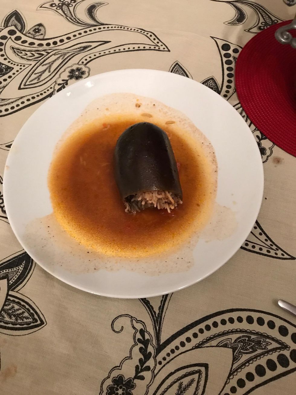 Than add the 7 stuffed aubergines on top of the tomatoes