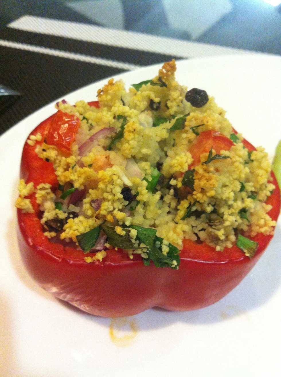 Scoop couscous onto capsicum and place on tray cool for 20-25 minutes