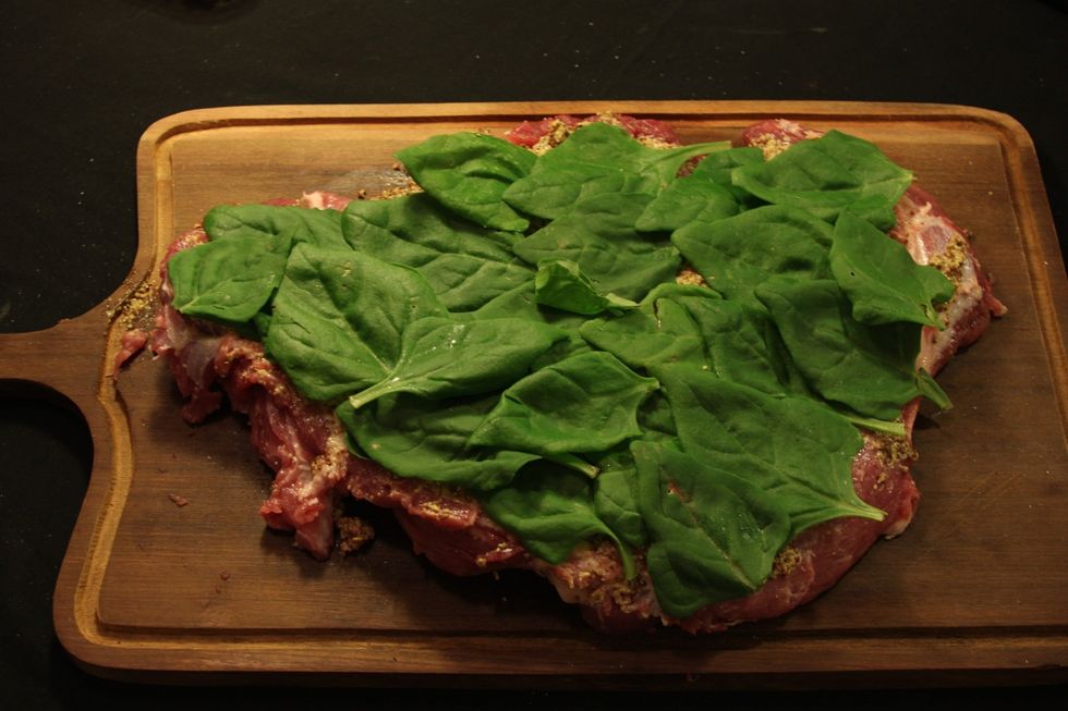 Distribuia as folhas de espinafre até cobrir completamente.