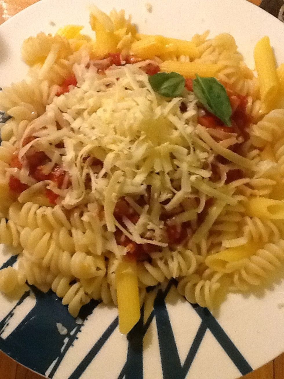 Top the pasta with the sauce and serve with grated cheese if you have it.