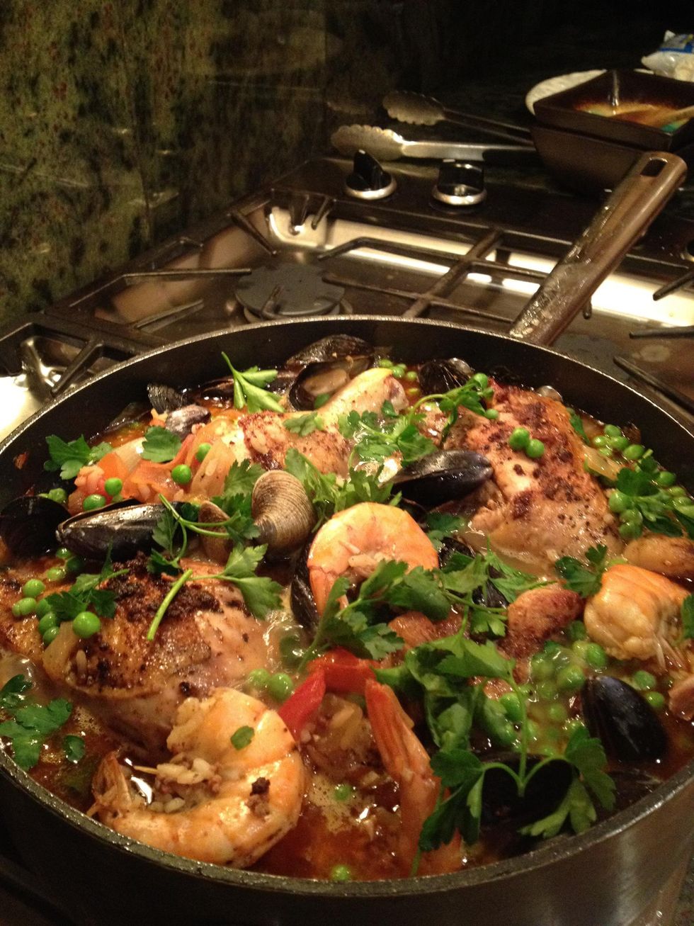 Add rice/clams/muscles/prawns. Let it simmer for 20 minutes more uncovered, or until rice is cooked. DO NOT STIR IT!
