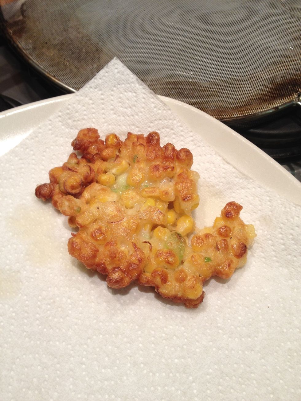Spoon out a 'dollop' of fritter stuff.... Again, cack handed works best.