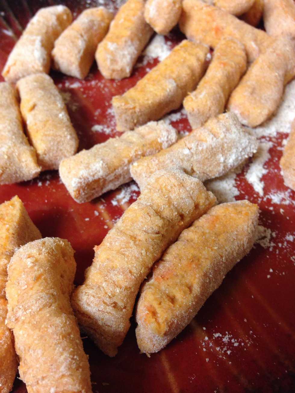 This recipe makes a lot of gnocchi. I froze half if the dough for later.. Rinse and dry the potato to get rid if any lose dirt.
